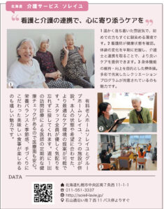 誌面では、「看護と介護の連携で、心に寄り添うケアを」というテーマのもと、私たちが日々取り組んでいるケアの様子をご紹介いただいています。